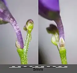 Die Tragblätter sind nicht behaart und sind nicht länger als die Blütenstiele. In einem traubigen Blütenstand sind meist mehr als zehn Blüten dicht angeordnet. Die Blütenknospen überragen das obere Ende des Blütenstands nicht.
