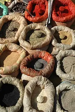Gewürze sind Pflanzenteile (Blätter, Blüten, Rinde, Wurzeln, Früchte, Saft), die wegen ihres natürlichen Gehaltes an Geschmacks- und Geruchsstoffen (ätherischen Ölen[1]) als würzende oder geschmacksgebende Zutaten bei der Zubereitung von Speisen und Getränken aller Art eingesetzt werden.[2] Sie kommen frisch, getrocknet oder bearbeitet vor.