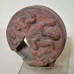 - ↑ Rattle. Sonkh, Mathura, Uttar Pradesh (India). UCLA Library, University of California (Rückseite mit geometrischen Verzierungen der oben abgebildeten Rassel)