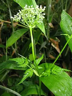 Doppeldoldiger Blütenstand auf langem Blütenstandsschaft von Aegopodium alpestre im Habitat
