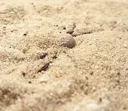 Teilweise im Sand eingegrabenes Weibchen von Sicarius levii