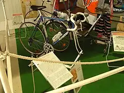 Trainingsrad des Profiradfahrers und Olympiasiegers (Vierer-Verfolgung 1972) Günter Haritz: Gios-Rahmen in Gios-Blau mit Torino-Aufschrift