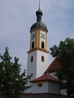 Der Buxheimer Kirchturm, 1685 von Camesino in der heutigen Form errichtet