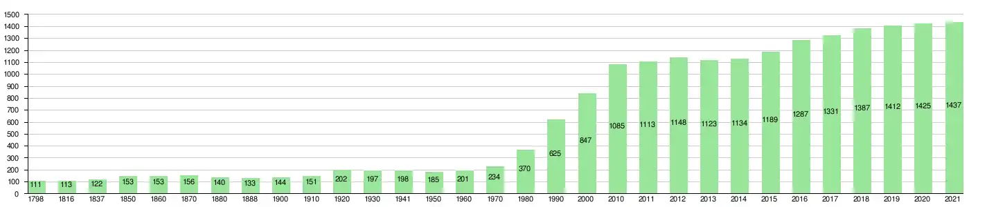 Quellen: 1798–1837: Helvetische und kantonale Volkszählungen[8]; Bundesamt für Statistik; 1850 bis 2000 Volkszählungsergebnisse, 2010 ESPOP, seit 2011 STATPOP