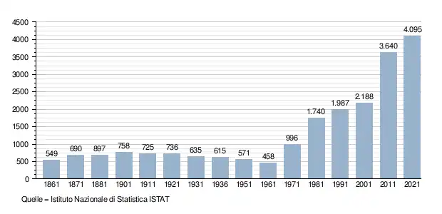- ↑ Bilancio demografico e popolazione residente per sesso al 31 dicembre 2024. ISTAT. (Bevölkerungsstatistiken des Istituto Nazionale di Statistica, Stand 31. Dezember 2024).