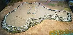 Eine dünnere Mauer umgab das Gebäude zusammen mit einem 1,5 ha großen Bereich, und es gab im Osten und im Süden ein Zugangstor. Im Osten des „Palasts“ schloss sich ein weiterer kleiner Bereich an, der von einer Mauer umgeben war und dessen Funktion bisher unbekannt ist. In Byzantinischer Zeit wurde auf den Grundmauern des Palastes eine kleine Kirche errichtet, die jedoch heute komplett verschwunden ist.