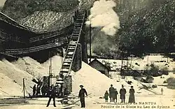 Das Geschäft florierte und bereits zehn Jahre später waren je nach Härte des Winters zwischen 150 und 300 Personen bei ihm beschäftigt. Die unmittelbar am Seeufer entlang führende Bahnstrecke Bourg-en-Bresse–Bellegarde konnte 1877 fertiggestellt werden und begünstigte sein Unternehmen sehr. Moinat ließ 1883 einen Gleisanschluss an die Linie bauen und konnte schon bald 20 bis 30 Waggons täglich beladen, die wegen der niedrigeren Temperaturen nur nachts unterwegs waren. Zuvor musste er das Eis auf Pferdewagen zum Bahnhof Bellegarde-sur-Valserine transportieren.[5] Die Güterwaggons mit Eis gingen nach Lyon, Genf und Paris, vereinzelt sogar bis Algerien.[4]