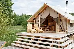 Glamping steht für luxuriöse Formen des Campings.[1] Alternative Bezeichnungen lauten Boutique-Camping, Luxuscamping, Komfortcamping und Nobelcamping. Von den Buchenden wird Glamping als Variante des Naturtourismus angesehen, bei dem auf Komfort nicht verzichtet werden muss.