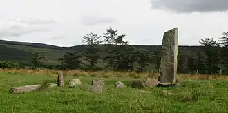 In der Republik Irland gibt es 187 Steinkreise. Die Mehrheit befindet sich mit 103 Kreisen im County Cork. 20 Kreise liegen im County Kerry und 11 im County Mayo. Der nahe dem Wedge Tomb gelegene Steinkreis hat fünf Meter Durchmesser. Fünf seiner elf kleinen Steine stehen noch, während sechs umgefallen sind. Außerhalb des Kreises gibt es im Norden und Süden zwei vier Meter hohe, wieder errichtete Menhire, einer ist erneut umgefallen. In der Kreismitte befindet sich ein großes Loch. Hier befand sich vermutlich ein Boulder Burial. Damit gehört der Kreis in eine kleine Gruppe von Kreisen mit Graben und Wall, wie sie auch bei Reanascreena im County Cork und Lissyviggeen im County Kerry vorliegen.