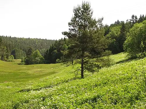 Auf den naturbelassenen Wiesen des 160 Hektar großen Gebiets finden sich unter anderem Waldläusekraut, Bärwurz, Fett- und Knabenkraut. Sie bieten Lebensraum für Schmetterlinge wie Randring-Perlmuttfalter, Baldrian-Scheckenfalter, Aurorafalter, Kleines Wiesenvögelchen, Bibernell-Widderchen und andere Widderchen. Seit 1985 wird ein Teil des Gebiets von einer Ortsgruppe des BUND betreut, die unter anderem Tümpel für Amphibien anlegte.[1]