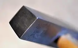 Wesentliches Merkmal ist der trapezförmige und scharfkantige Hammerkopf, der es ermöglicht, den Hammer „schleifend“ an einer Glasfläche (auch Holzfläche) dergestalt zu führen, das Stifte, Nägel etc. sehr flach eingeschlagen werden können und dabei ausreichender Platz für die den Hammer führende Hand ist. Die Masse des Hammerkopfes beträgt meist 150 g.