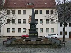 - Kursächsische Postmeilensäule vom Markt, rekonstruiert 1981 mit dem Originalwappenstück von 1734, vor dem Haus der Uhr an der Altenberger Straße (Müglitztalstraße)