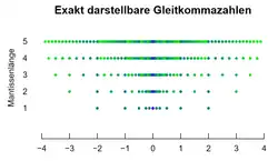 - Die seit 1985 üblichen Darstellungsformate für Computer haben eine Genauigkeit von 24 bzw. 53 Binärstellen, das sind umgerechnet etwa 7 bzw. 15 Dezimalstellen.