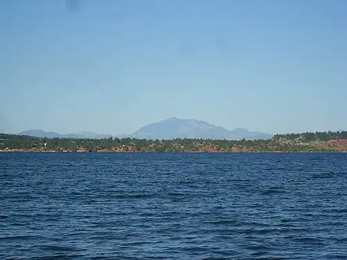 Das Glendo Reservoir mit dem Laramie Peak im Hintergrund | ||