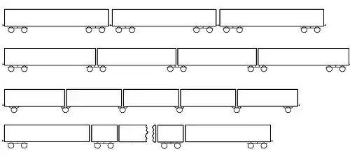 Obere Mitte: Gliederzug mit Jakobs-Drehgestellen