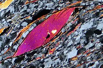 - ↑ A. Azor, J. Fernando Simancas, I. Expósito, F. González Lodeiro und D. J. Martínez Poyatos, D.J.: Deformation of garnets in a low-grade shear zone. In: Journal of Structural Geology. Band 19, 1997, S. 1137–1148.