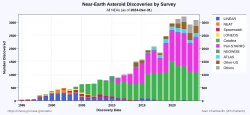 Beispiel für ein solches Projekt ist etwa LINEAR. Allein bis Ende 2007 wurden mehr als 220.000 neue Objekte gefunden, darunter über 2000 Erdbahnkreuzer. Insgesamt haben derartige Suchprogramme die Zahl der bekannten Objekte erheblich erhöht.