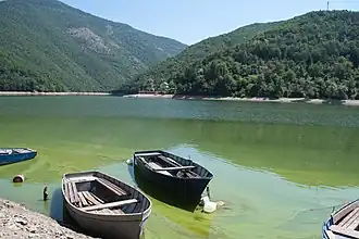 ![]() Blick auf das verlassene Globočica hinter dem Globočicasee (2018) | |||||