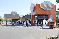 Außerdem sind an den jeweiligen Standorten in Eigenproduktion arbeitende Fachmetzgereien, Bäckereien und Gastronomiebereiche vorhanden, sowie Frischetheken für Sushi, Käse und Fisch.[40] An einigen Standorten gibt es auch Tankstellen, E-Ladeparks und Waschstraßen.[41][42][43] Die früher von Globus betriebenen Auto- und Reifencenter wurden 2020 von Pitstop übernommen.[44][45] Die russischen Lebensmittelmärkte agieren seit Januar 2025 unabhängig und gehören nicht mehr zur Globus Holding.[46]
