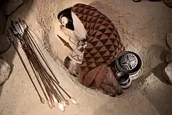 Die Toten wurden als Hocker in geschlechtsspezifischer Orientierung und Seitenlage beigesetzt: