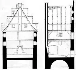 Hinter dem großen Vorderhaus und mit diesem durch zwei Durchgänge im Erdgeschoss und Speichergeschoss verbunden steht ein ehemals dreigeschossiges, massives Steinwerk, das mit ca. 1 m starkem Mauerwerk aus Kalkbruchsteinen und Eckquadern errichtet ist. Die Giebel sind als vierstufige Treppengiebel gestaltet. Innerhalb des Nordgiebels befindet sich ein Kamin mit Resten einer Feuerstelle im Erdgeschoss.