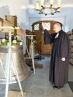 - ↑ Hartwig A. W. Niemann: Glocken. In: Theologische Realenzyklopädie (TRE). Band 13, de Gruyter, Berlin / New York 1984, ISBN 3-11-008581-X, S. 446–452., hier S. 451. Christian Heckel: Glocken III. Kirchenrechtlich. In: Religion in Geschichte und Gegenwart (RGG). 4. Auflage. Band 3, Mohr-Siebeck, Tübingen 2000, Sp. 1009–1010.