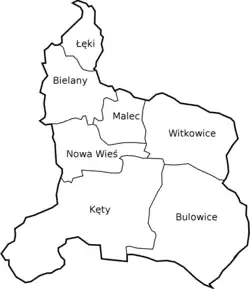 Bulowice (4720), Bielany (1878), Łęki (1302), Nowa Wieś (3209), Malec (1250) und Witkowice (2157).