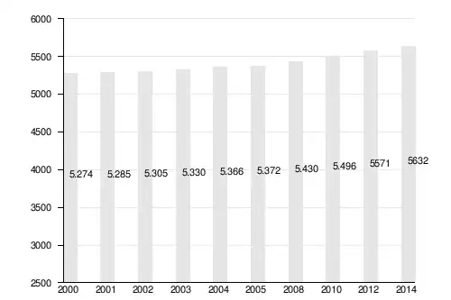 Nachfolgend die graphische Darstellung der Einwohnerentwicklung der Gemeinde von 2000 bis 2008.[12][13][14][15][16]