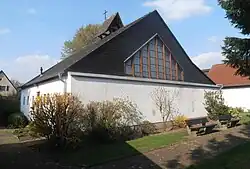 Der verputzte und verbretterte Saal wurde 1950 von der Amerikanischen Sektion des Lutherischen Weltbundes gestiftet. Der Typenbau, eine sogenannte Bartning-Notkirche, wurde im Rahmen des Diaspora-Kapellen-Programms nach einem Entwurf von Otto Bartning (1883–1959) errichtet.