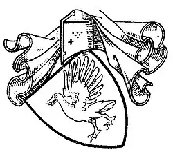 Blasonierung: Eine nach rechts auffliegende Ente. Helmzier und Tingierung sind nicht überliefert.[8]