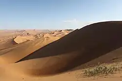 Handelt es sich um vom Wind angewehten Sand, der ausgedehnte Flächen oder kleine Dünen bildet, dann wird in China von shazhi huangmo (沙质荒漠 „Sandland“) gesprochen,[5] wie zum Beispiel Hunshandake Shazhi Huangmo (浑善达克沙地, englisch „Hunshandake Sandy Land“, deutsch „Hunshandake-Sandland“) am östlichen Extrem der Wüste Gobi in China. 45,3 % aller chinesischen Wüstenflächen sind solche Sandwüsten.[6] In der Mongolei heißen die Sandwüsten Els, wie z. B. das Dünenfeld Khongoryn Els.