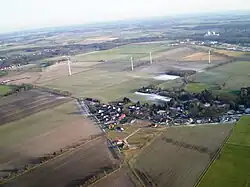 Höchste Erhebung ist mit 63 m ü. NN der Wehenberg nördlich des Ortskerns.