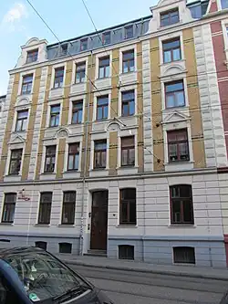 - Nr. 88: 2-gesch. Wohnhaus im Gründerzeitstil mit Praxen und mit Hintergebäude (D) sowie seitlichem Giebelrisalit