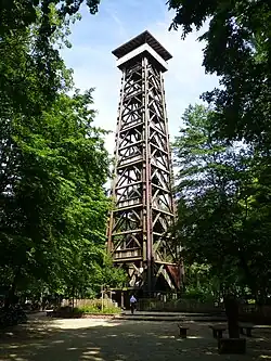 Der Goetheturm ist ein vollständig aus Holz erbauter, 43 Meter hoher Aussichtsturm am nördlichen Rand des Frankfurter Stadtwaldes in Sachsenhausen (Stadtteil von Frankfurt am Main) im Sachsenhäuser Landwehrweg. Der nach Johann Wolfgang von Goethe benannte Turm hat 196 Stufen und war bis 1999, als er vom Jahrtausendturm in Magdeburg abgelöst wurde, der höchste öffentlich zugängliche Holzbau Deutschlands. In der Nacht zum 12. Oktober 2017 wurde er durch Brandstiftung vollständig zerstört und zwischen 2019 und 2020 originalgetreu wiederaufgebaut.[1][2]