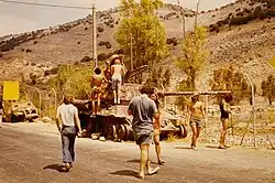 Österreichischen Kibbuz-Freiwilligen werden in Ein Hashofet Relikte der Golan-Schlacht von 1967 gezeigt, Sommer 1973