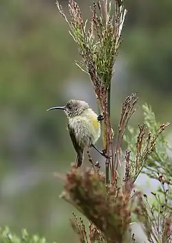 - ↑ Chi-hang Chan, Bettine Jansen van Vuuren, Michael I. Cherry: Fynbos Fires May Contribute to the Maintenance of High Genetic Diversity in Orange-Breasted Sunbirds ( Anthobaphes violacea ). In: South African Journal of Wildlife Research. Band 41, Nr. 1, April 2011, ISSN 0379-4369, S. 87–94, doi:10.3957/056.041.0105 (bioone.org [abgerufen am 25. August 2023]).