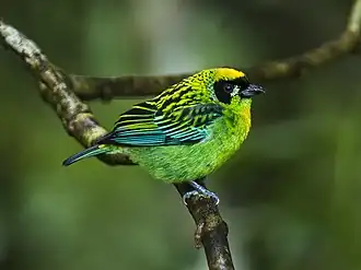 - ↑ S. Hilty: Green-and-gold Tanager (Tangara schrankii). In: Josep del Hoyo, Andrew Elliott, Jordi Sargatal, David A. Christie, Eduardo de Juana (eds.): Handbook of the Birds of the World Alive. Lynx Edicions, Barcelona 2017 (abgerufen von http://www.hbw.com/node/61685 am 9. Februar 2017).
