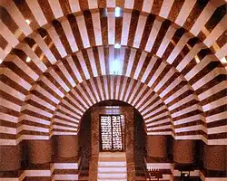Zwischen dem Heiligtum/Gebetsraum und dem Eingangsbereich ist eine kleine Rotunda. Diese ist mit dem ersten Satz der Schma Jisrael beschriftet, wobei der hebräische Text aus Richtung Eingang von der gegenüberliegenden Seite nach links verläuft, während die russische Version nach rechts verläuft, bis sich beide treffen. Die Türen zum Aaron haKodesh symbolisieren die Zehn Gebote.
