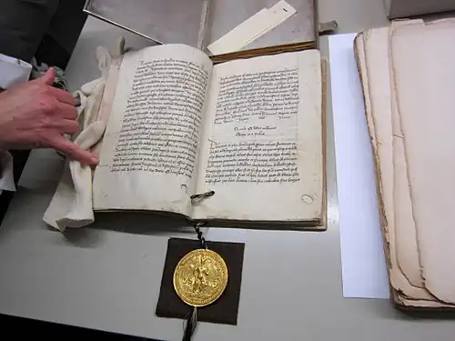- ↑ AT-OeStA/HHStA UR AUR 9228 Goldene Bulle - Böhmisches Exemplar, 1356.01.10 (Einzelstück (Aktenstück, Bild, Karte, Urkunde)). Abgerufen am 30. Juli 2025.