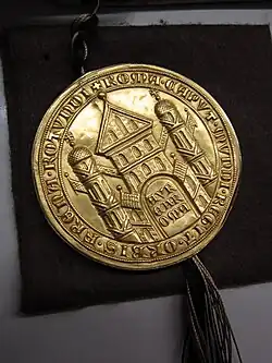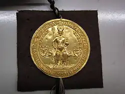 - Die eigentliche goldene Bulle (das goldene Siegel) im Detail