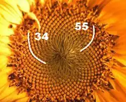 Die jeweils nächste Zahl in dieser Folge wird als Summe der beiden vorangehenden erhalten. Das Verhältnis zweier aufeinanderfolgender Zahlen der Fibonacci-Folge strebt gegen den Goldenen Schnitt (siehe Tabelle). Das rekursive Bildungsgesetz bedeutet nämlich