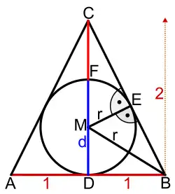 Klassisches Verfahren mit innerer Teilung nach Heron von Alexandria, das wegen seiner Einfachheit beliebt ist:[43]