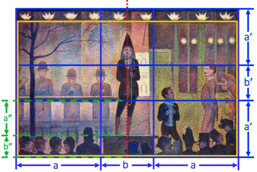 wird dann ebenfalls Goldener Schnitt genannt. Es muss sich bei den Werten und dabei nicht um (dimensionslose) reelle Zahlen handeln; auch eine Assoziation zu physikalischen Größen unter Zuweisung entsprechender Maßeinheiten ist möglich. Klassisch ist dabei die Veranschaulichung über das Teilungsverhältnis zweier Strecken (bei dem die längere Strecke als „Major“ und die kürzere als „Minor“ bezeichnet wird[1]), aber auch andere Einheiten können betrachtet werden, siehe zum Beispiel Goldenes Rechteck.