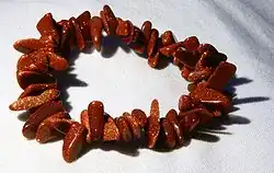 Goldfluss, auch als Aventuringlas oder Goldstein bekannt, ist eine synthetische Glasart, die häufig als Schmuckmaterial verwendet wird. Es handelt sich dabei nicht, wie häufig im Verkauf angegeben, um ein natürliches Mineral.