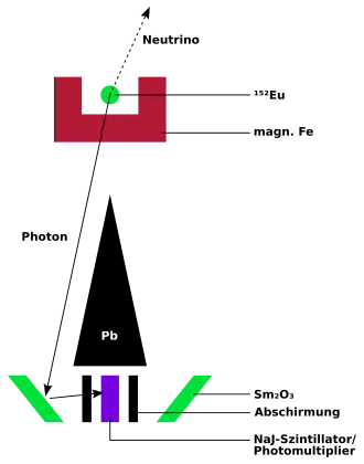 Im Experiment wird ein 152Eu-Kern in einem isomeren (metastabilen) Zustand verwendet, der durch K-Einfang zerfällt. Dabei wird ein Neutrino emittiert: