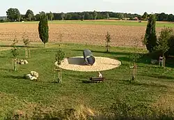 2016 wurde auf dem Hohen Berg zur Erinnerung an den Fund ein Denkmal aufgestellt. Dabei handelt es sich um das Rohrstück einer Pipeline[81] und eine Informationstafel. Der Standort des Denkmals ist nicht die Fundstelle, die sich etwa 1,5 km südöstlich davon befindet.