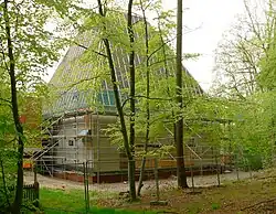 Der 2020 fertiggestellte Anbau des Kreismuseums Syke ist pyramidenartiges, monolithisches Gebäude mit einer Fläche von rund 650 m², das von Freitag Hartmann Architekten aus Berlin entworfen wurde.[70][71] Mit 18 Metern Höhe hebt es sich von den historischen Gebäuden des Kreismuseums Syke ab, passt sich jedoch mit seinen Materialien, wie die mit hängenden Ziegeln versehene Fassade, in das Museumsensemble ein.[72] Das Gebäude trägt die Bezeichnung Forum Gesseler Goldhort.[73] Auf zwei Ebenen stehen etwa 240 m² Ausstellungsfläche zur Verfügung. Im Obergeschoss wird der Goldhort in einer Vitrine innerhalb eines goldfarbenen Kabinetts unterhalb des zentralen Oberlichts gezeigt, das sich in 14 Meter Höhe befindet. Im Erdgeschoss beherbergt das Gebäude ein „Mitmach-Labor“ zu archäologischen Forschungsmethoden und ein Besuchercafé. In der Museumsausstellung werden archäologische Untersuchungsmethoden, die Bronzezeit als Zeit der Deponierung des Goldhortes und Fundstücke, die beim Bau der NEL-Pipeline im Landkreis Diepholz entdeckt wurden, gezeigt. Konzipiert und kuratiert wurde die Ausstellung vom Archäologen Herwig Kenzler[74]; gestaltet vom Berliner Architekturbüro neo.studio.[75]