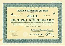- ↑ Goldina AG, Historisches Wertpapierhaus, abgerufen am 15. Juni 2020