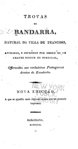 Die gereimten Verse, eingeteilt in Strophen, erschienen erstmals 1603 in Paris im Druck. Dom João de Castro, ein nicht weiter bekannter Mann, brachte diese unter dem Titel Paraphrase et concordancia de alguas prophecias de Bandarra, capateria de Trancoso, por Ioam de Castro, 1603 heraus. 1644 wurden sie in Nantes, 1809 in Barcelona und 1815 in London nachgedruckt.