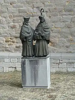 In Aachen sollen Monulphus und Gondulphus der Sage nach als Skelette zur Einweihung des Aachener Doms angereist sein, woraufhin später die dortige Klappergasse ihren Namen erhielt.[4] Karl der Große hatte sich gewünscht, dass 365 Bischöfe, einer für jeden Tag des Jahres, bei der Weihe anwesend sein sollten. Am Vorabend der Weihe waren aber erst 363 Bischöfe in Aachen angekommen. So erschien ein Engel in der Servatiusbasilika und schickte Monulphus und Gondulphus nach Aachen.[5]